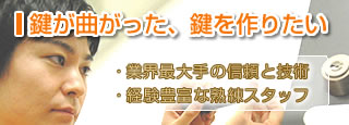 会社の倉庫の鍵が折れてしまい、鍵の作製をお願いしました。必要な合鍵もその場で作って頂け、わざわざ合鍵屋に行かなくて済みました。出張して頂いて本当に良かったです。